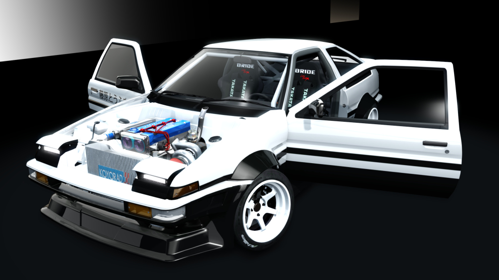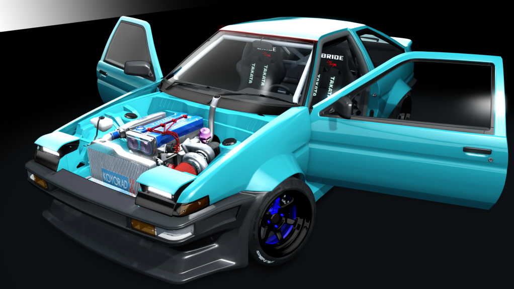 The car's engine is a Billet 4AGE with a single turbo. Wisefab steering geometry.